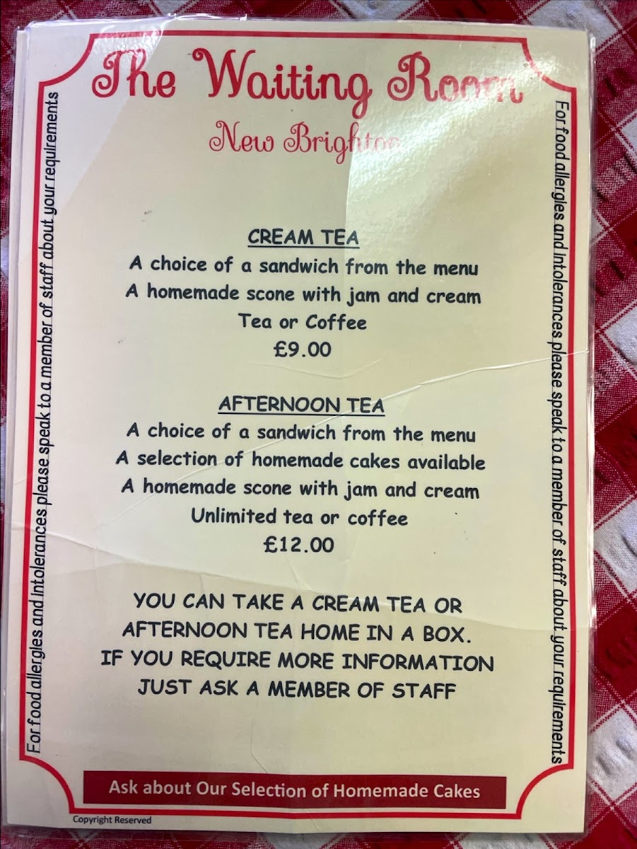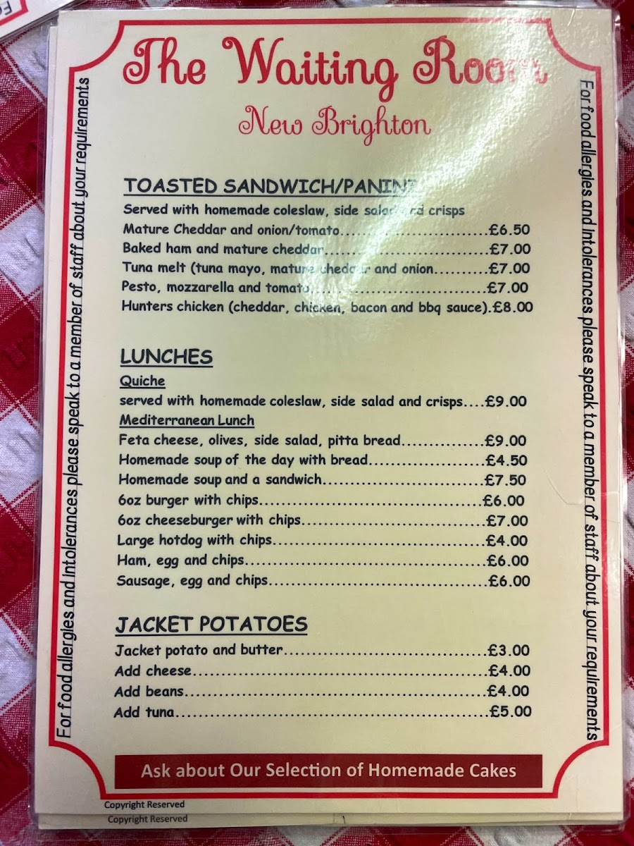 The Waiting Room Cafe Menu